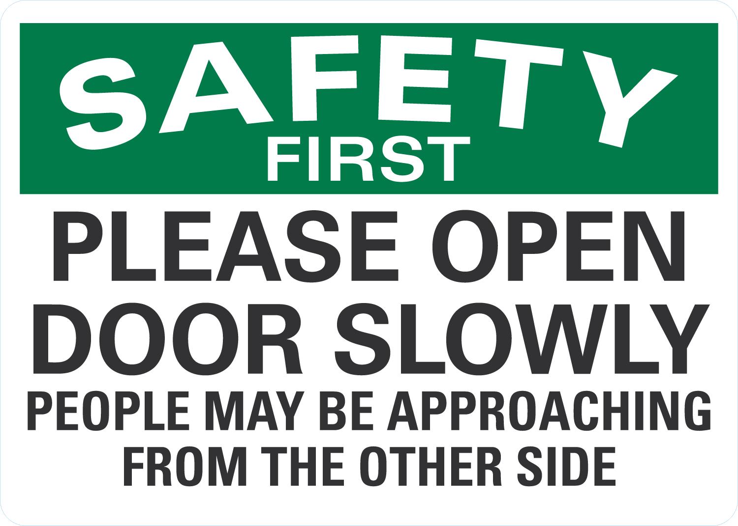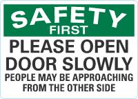 OSHA Safety First Sign: Please Open Door Slowly, People May Be Approaching From The Other Side