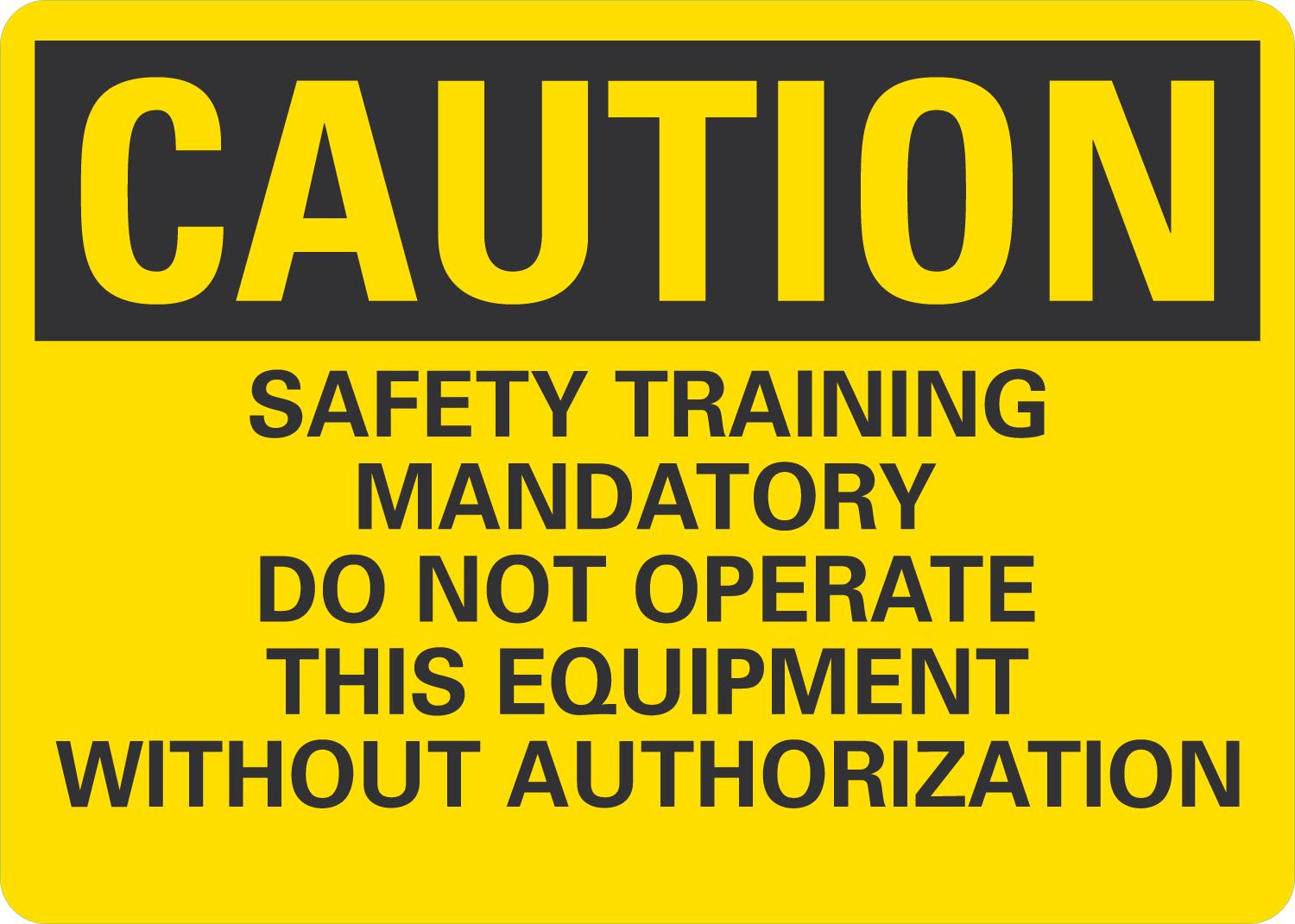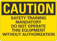 Caution OSHA Sign: Safety Training Mandatory - Do Not Operate This Equipment Without Authorization