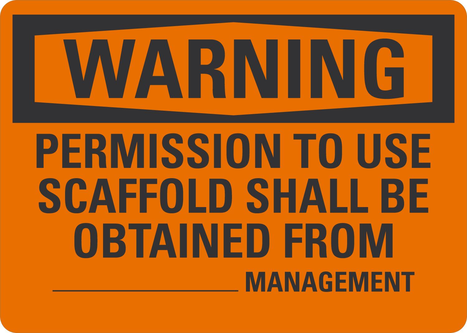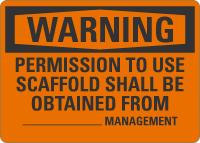 Warning OSHA Sign: Permission To Use Scaffold Shall Be Obtained From ___ Management