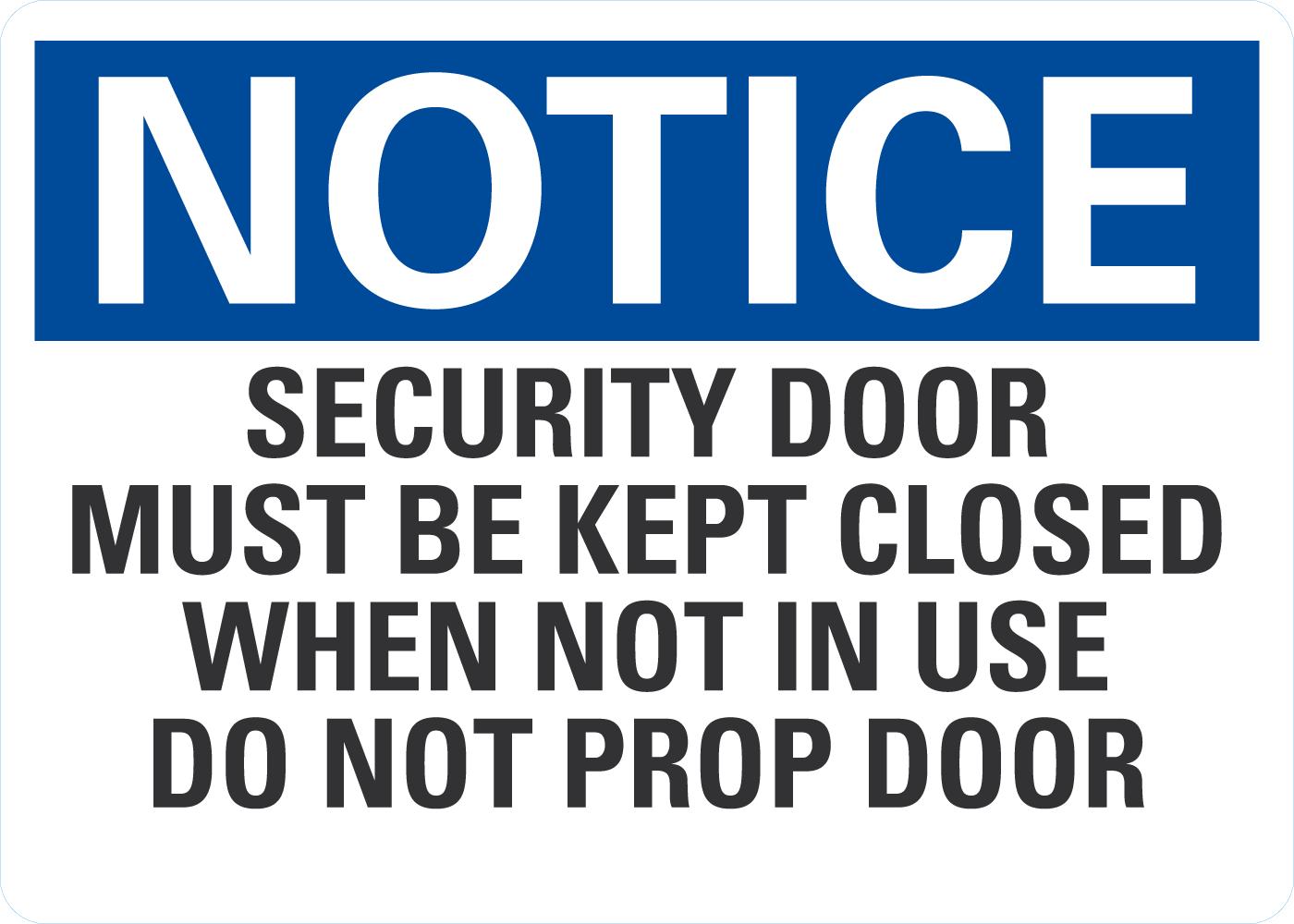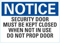 OSHA Notice Sign: Security Door Must Be Kept Closed When Not In Use Do Not Prop Door