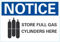 Notice OSHA Sign: Store Full Gas Cylinders Here