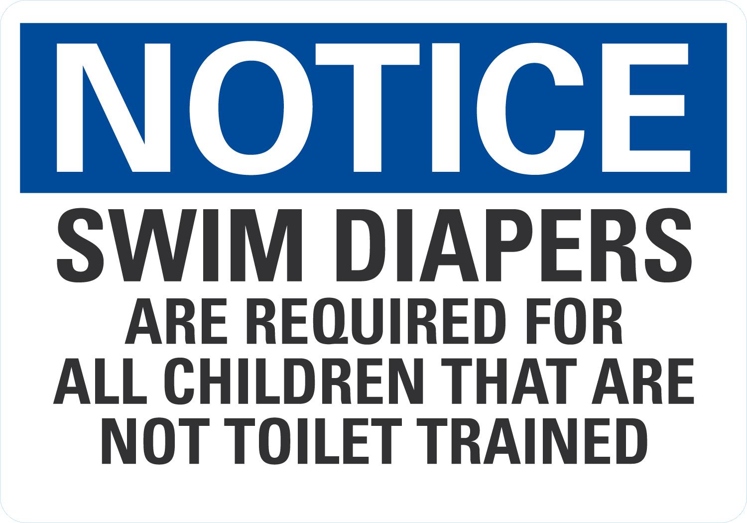 OSHA Pool Notice Sign: Swim Diapers Are Required For All Children Who Are Not Toilet Trained
