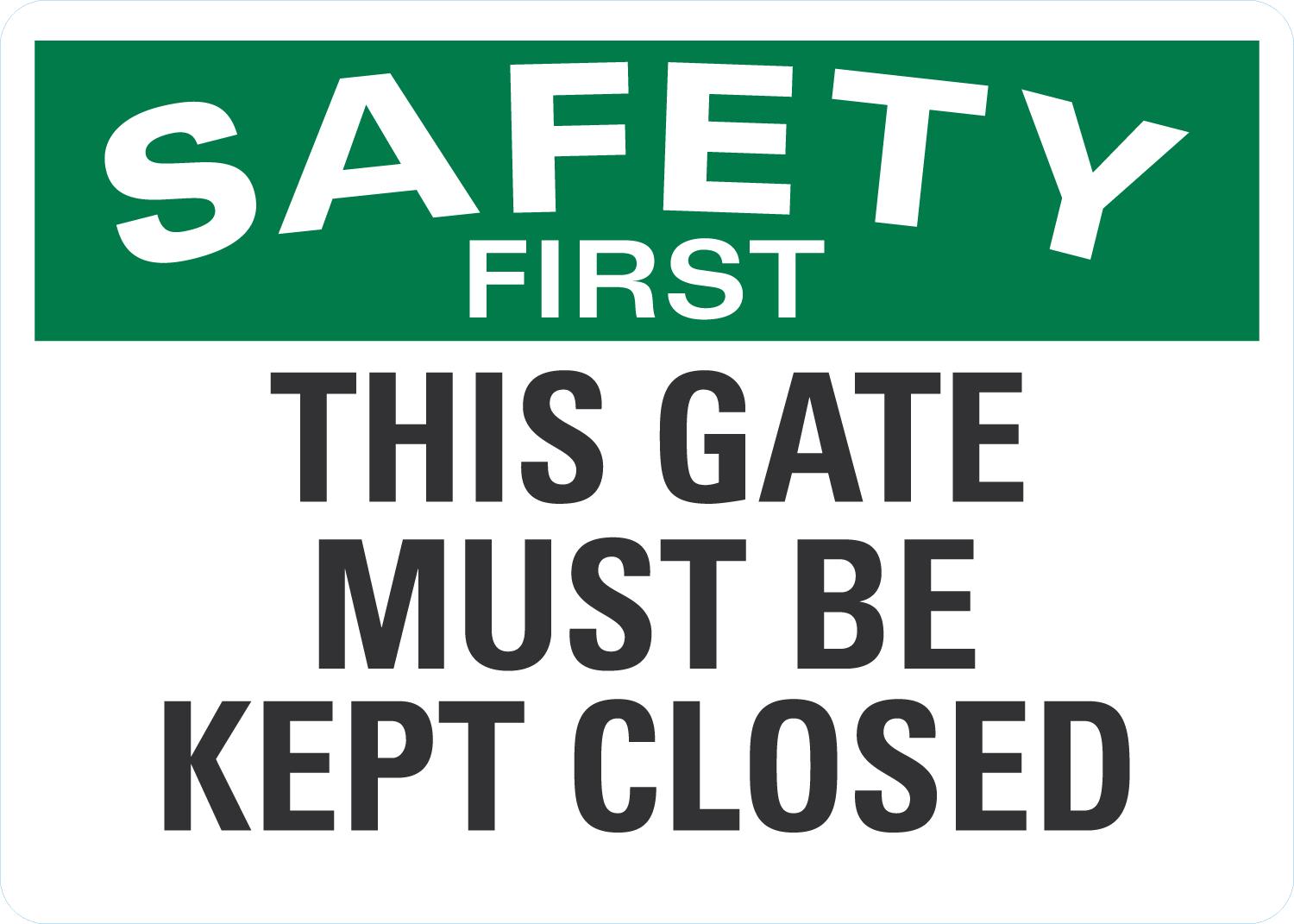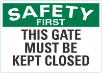 Safety First OSHA Sign: This Gate Must Be Kept Closed