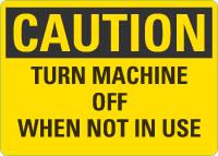 Caution OSHA Sign: Turn Machine Off When Not In Use