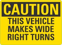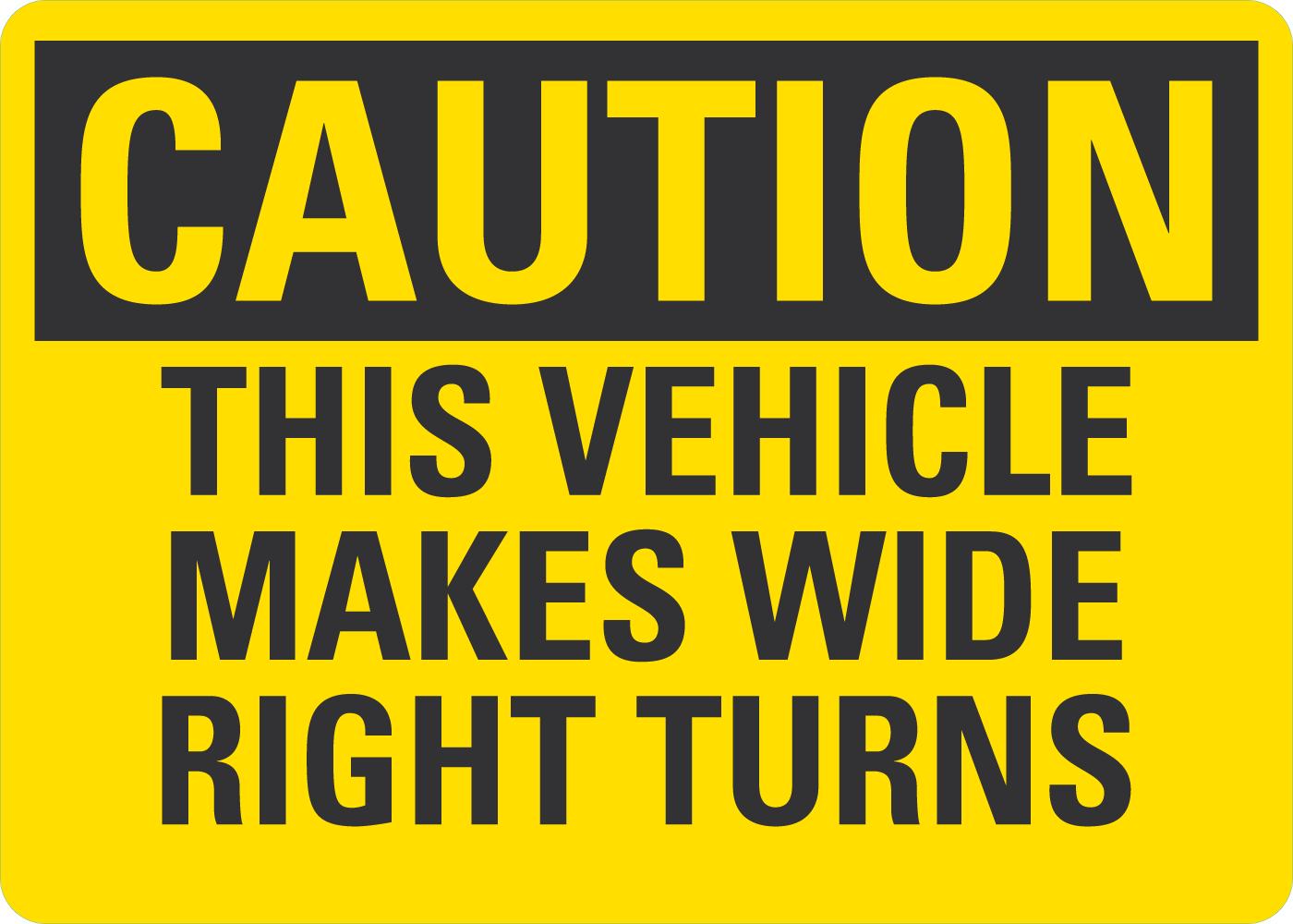 Caution OSHA Sign: This Vehicle Makes Wide Right Turns