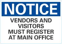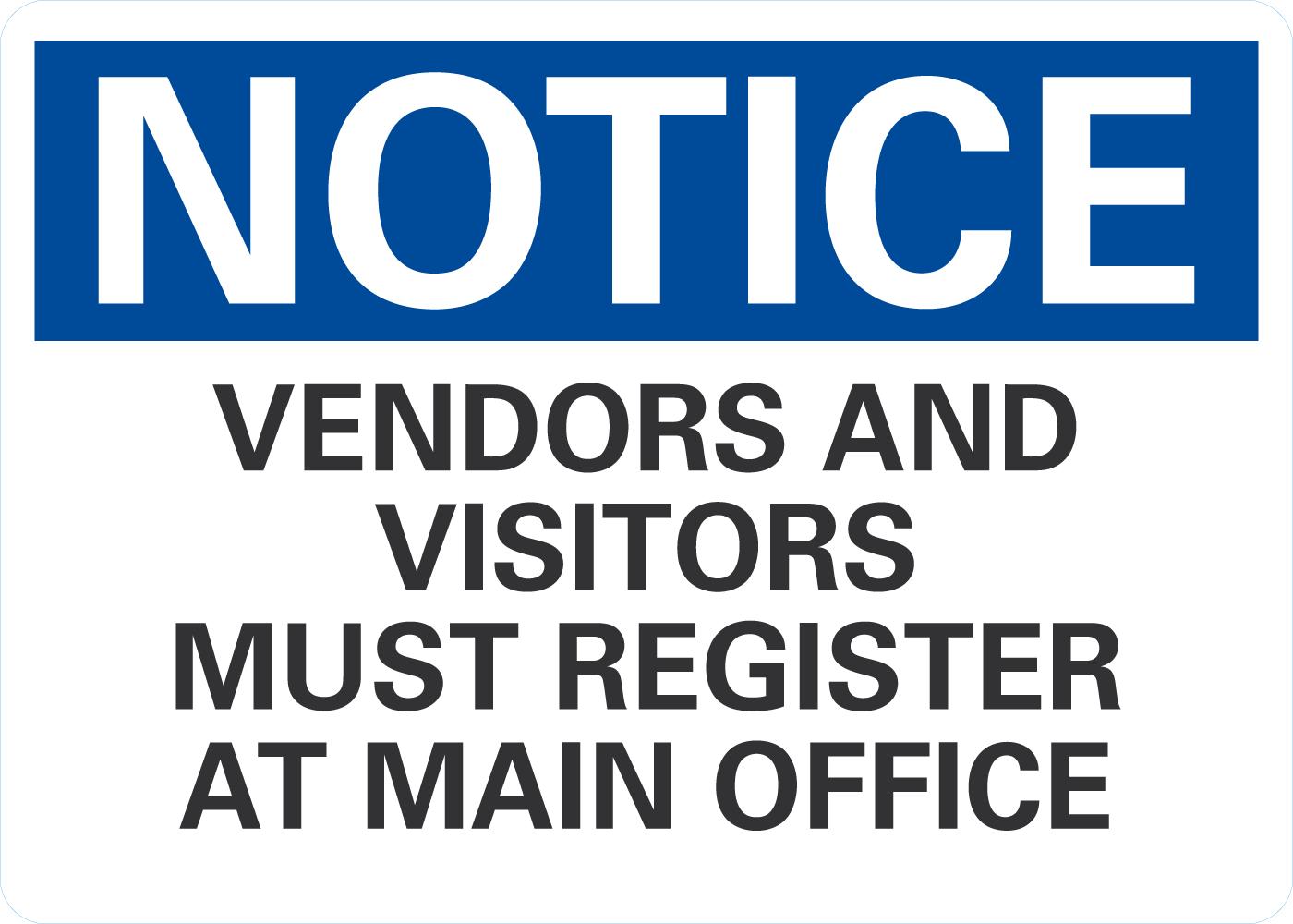 OSHA Notice Sign: Vendors And Visitors Must Register At Main Office
