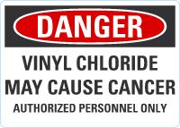 Danger OSHA Sign: Vinyl Chloride May Cause Cancer - Authorized Personnel Only