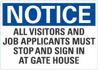 OSHA Notice Sign: All Visitors And Job Applicants Must Stop And Sign In At Gate House