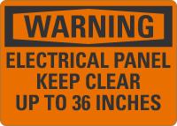 Warning OSHA Sign: Electrical Panel Keep Clear Up To 36 Inches