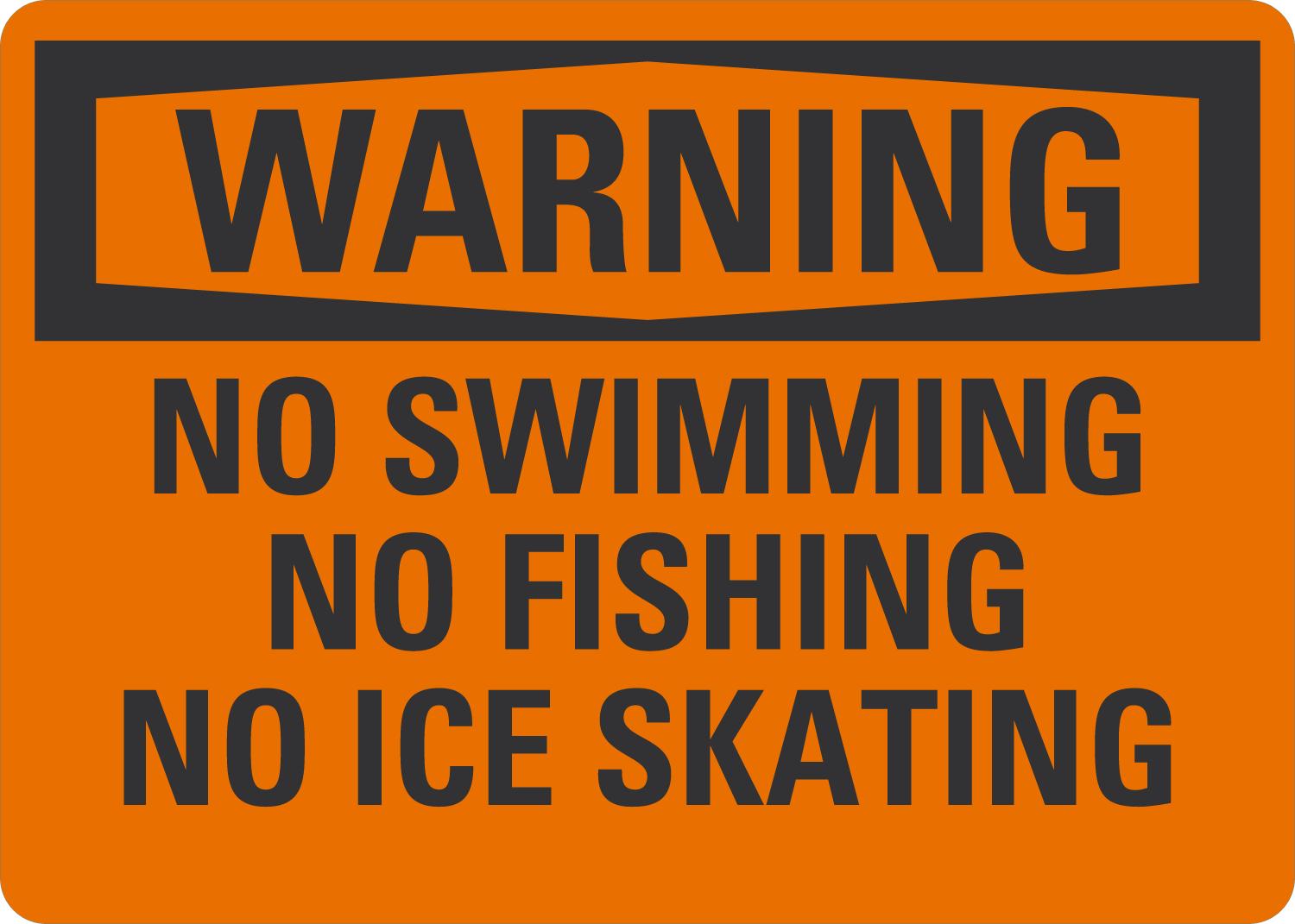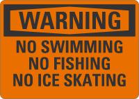 OSHA Warning Sign: No Swimming, No Fishing, No Ice Skating