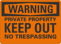 OSHA Warning Sign: Private Property - Keep Out, No Trespassing