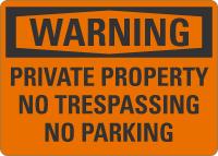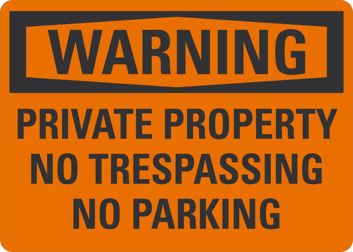 OSHA Warning Sign: Private Property - No Trespassing, No Parking