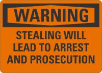 OSHA Warning Sign: Stealing Will Lead To Arrest And Prosecution