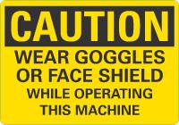Caution OSHA Sign: Wear Goggles Or Face Shield While Operating This Machine