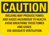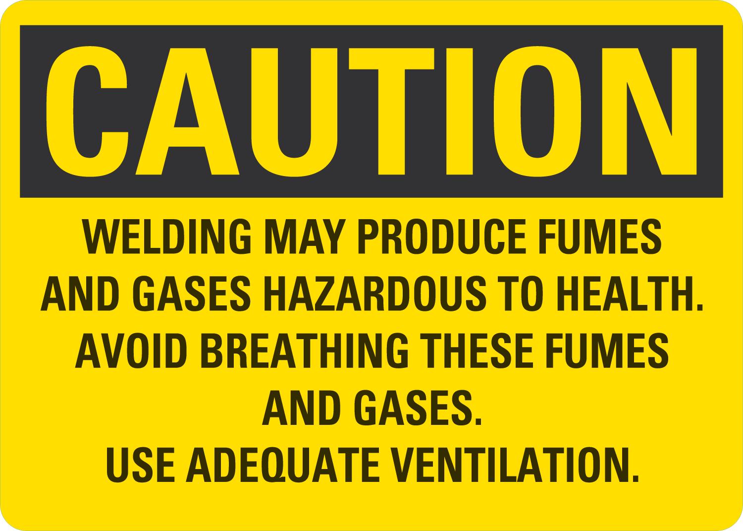 Caution OSHA Sign: Welding May Produce Fumes and Gases Hazardous To Health. Avoid Breathing These Fumes and Gases. Use Adequate Ventilation.
