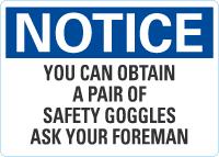 OSHA Notice Sign: You Can Obtain A Pair Of Safety Goggles Ask Your Foreman